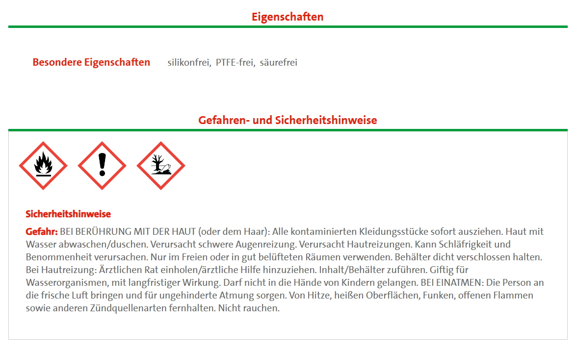 Öl, Fett, Schmutz und eingetrocknete, verharzte Öle sowie Bremsstaub werden wirkungsvoll entfernt. Der Reiniger hat einen starken Sprühstrahl, lüftet rückstandsfrei ab und einen angenehmen Duft. Die Materialverträglichkeit ist sehr gut, auch bei Lack und Kunststoff.