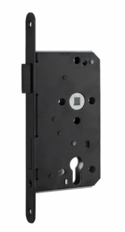 ES-BLACK Einsteckschloss mit mattschwarz lackiertem Stulp und schwarzer Beschichtung von Falle und Riegel