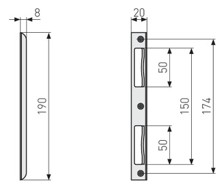 Unser Winkelschließblech WSBHT190 aus Stahl eignet sich für Haustüren, sowohl DIN-links und DIN-rechts schließend.