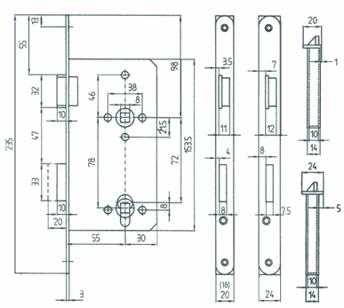 Korridorschloss 2420 P falz oder stumpf, Klasse 2, Falle, Riegel und Nuss aus Zinkdruckguss, mit EAN 4002730107352