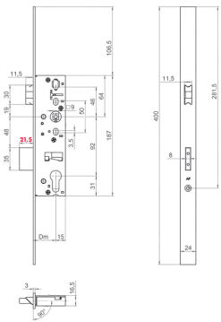 1005 R, Rohrrahmenschlösser mit Reparaturstulp, mit Anti-Panikfunktion E, Stulp 24 x 400 mm Edelstahl, Klasse 3, nach DIN 18250 FS, 1-tourig, mit Wechsel, Riegelausschluss 21,5 mm, Lochung für Schutzbeschlag, mit Flüsterfalle, Nuss 9 mm EAN: 4002730103415