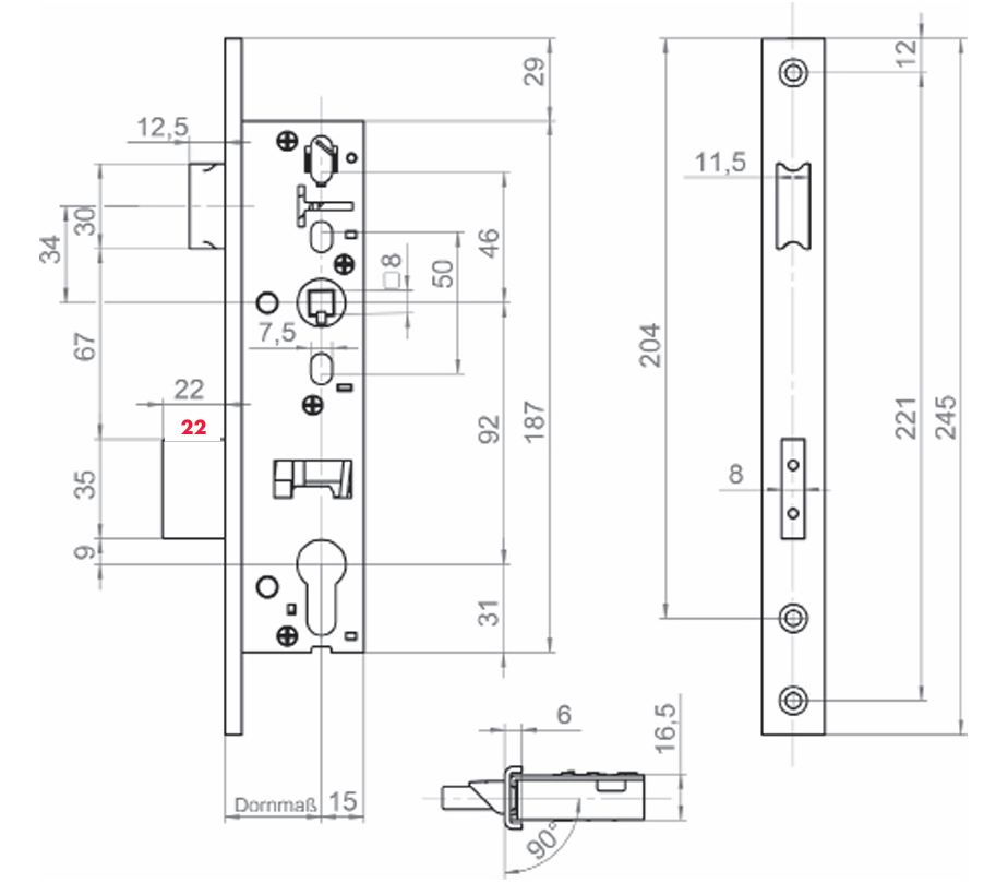 1006 U, Rohrrahmenschloss mit U-Stulp 24 x 245 x 6 mm, Klasse 3, Edelstahl, 1-tourig, mit Wechsel, Falle auf rechts oder links umlegbar, Riegelausschluss 21 mm, Riegel 1mm vorstehend 1006 PU, Rohrrahmenschloss mit U-Stulp 24 x 245 x 6 mm, mit Anti-Panik-Funktion E, Klasse 3, Edelstahl, 1-tourig, mit Wechsel, Falle auf rechts oder links umlegbar, Riegelausschluss 21 mm, Riegel 1mm vorstehend, EN179 EAN: 4002730112790