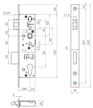 Sie sind hier: profilzylinder-shop.de » Bever + Klophaus / Einsteckschlösser / Kastenschlösser Rohrrahmenschlösser / Garagenschlösser » Rohrrahmenschlösser » Rohrrahmenschloss 49 P, Stulpbreite 16 mm