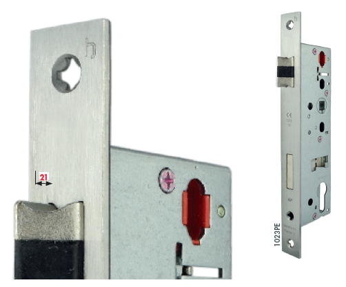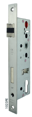 1023, Rohrrahmenschlösser, mit Anti-Panikfunktion E, Stulp 24 x 255 mm, Klasse 3, nach DIN 18250 FS 1-tourig, mit Wechsel, Riegelausschluss 21 mm, Falle auf rechts oder links umlegbar, Lochung für Schutzbeschlag, mit Flüsterfalle, Nuss 9 mm, Stulp aus Edelstahl, EN179 EAN: 4002730109776