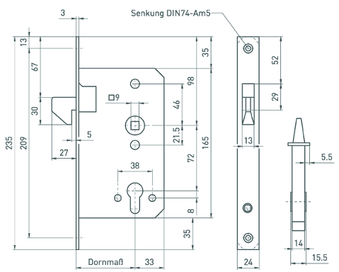 Schiebetürschloss mit Hakenfalle 142 P