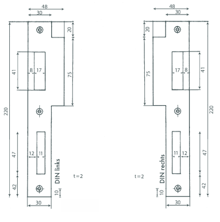 Sie sind hier: profilzylinder-shop.de » Bever + Klophaus / Einsteckschlösser / Kastenschlösser Rohrrahmenschlösser / Garagenschlösser » Schließbleche » 5 HT, links / 6 HT, rechts, Haustür-Lappenbleche