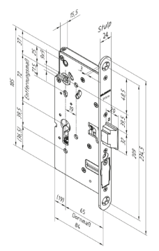 Selbstverriegelndes Mittelfallenschloss mit Panikfunktion E 1009PPFSVL