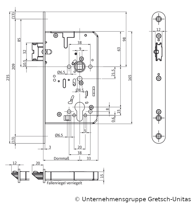 BKS 2116 SVP, PZ-SVP-Einsteck-Schloss selbstverriegelnd mit Panikfunktion E