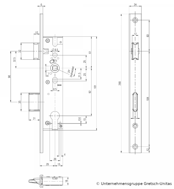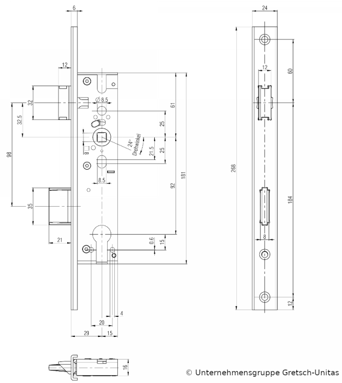 BKS RR-Schloss B1314 25 mm Dorn F270 für einflügelige Türen