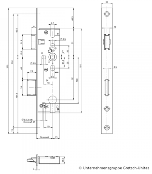 BKS Einsteckschloss für Rohrrahmentüren B 1314 / 270 mm