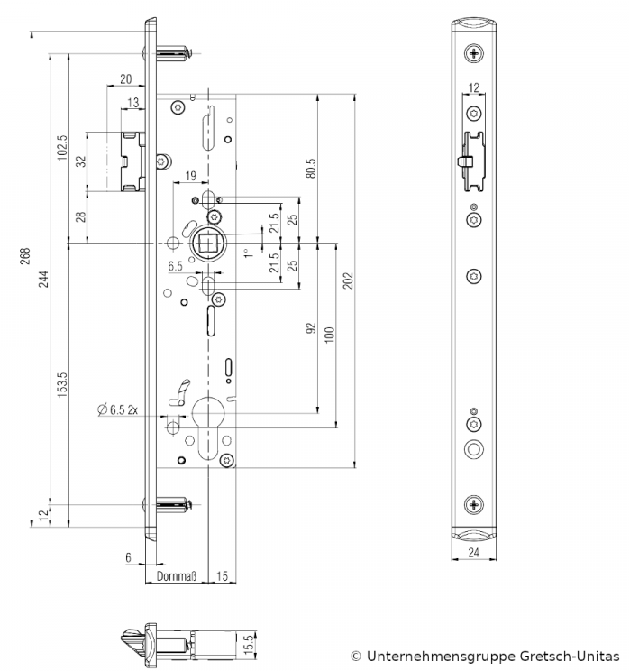 BKS RR-Schloss B1916 25 mm Dorn F270 für einflügelige Türen