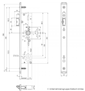 BKS Einsteckschloss für Rohrrahmentüren B 1916 / 270 mm