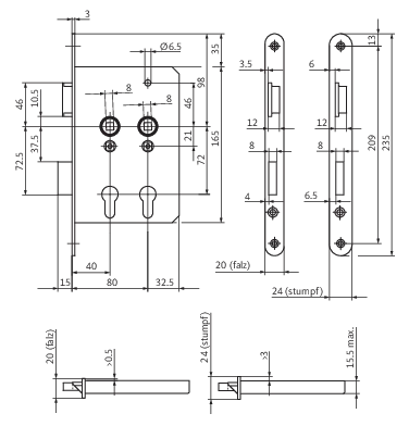 EINSTECKSCHLOSS 40/80 MM DORN,72 MM PZ-GELOCHT, STULP 20 MM,FALZ, ABGERUNDET,NICHTR.STAHL, DIN LINKS, OHNE WECHSEL