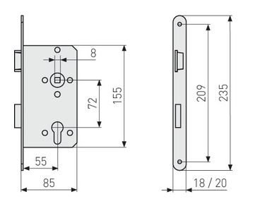 ABUS Einsteckschloss für Wohnungsabschlusstüren ES PZ2 RG 55 72 18 SB