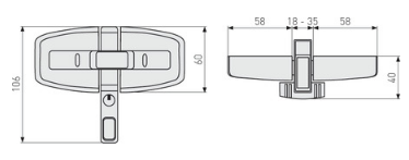 Fenster-Zusatzschloss für Doppelflügelfenster mit Mittelsteg.