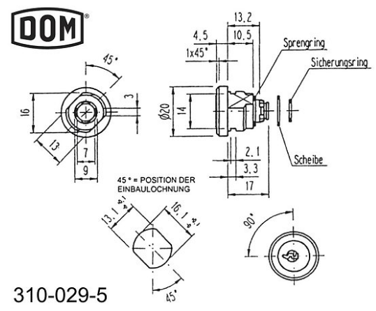 Dom 310-029-5 Kleinzylinder für Steckdosen z. B. Busch Jäger OCEAN