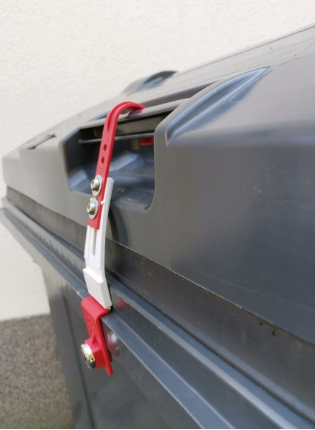 Verschließbar sind 4-Rad-Behälter bis 1100 Liter. Voraussetzung ist, dass der Container Öffnungsgriffe im Deckel integriert hat.