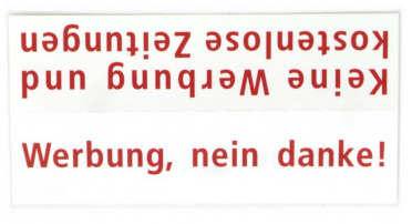 Vorderseite: Werbung, nein danke! (Schriftfarbe rot)