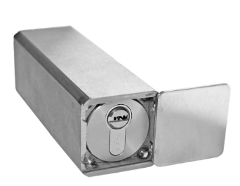 Box zur Aufbewahrung von Gegenständen, aus Edelstahl, vorgerichtet für PZ-Halbzylinder, Abdeckung bietet Schutz vor Staub, Regen, etc, ideal zum Anschweißen an Säulen, Tore, Zäune, Außen 147x50x50mm, Innen 95x41x41mm