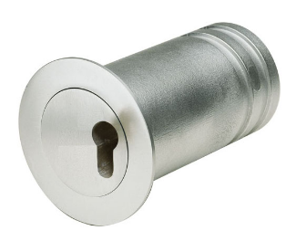 Schlüsseltresor / Rohrtresor zur Aufbewahrung von Gegenständen, ohne Maueranker mit Abdeckkranz vorne und mit Edelstahlverschluß, ohne PZ, Außen 150 x 75mm, Innen 105 x 58mm, vorgerichtet für PZ-Halbzylinder