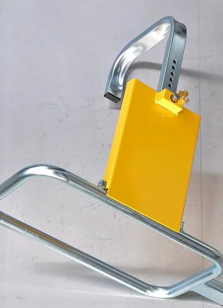 Die Fahrzeugkralle Modell 2007 ist eine leichte 2-teilige Elipsen-Kralle, die sich besonders gut für Anhänger oder Trailer eignet, die das Spritzschutzblech ca. 5 cm vom Reifen entfernt haben. Das Leicht-Gewicht von nur ca. 6 kg kann auf ca. 6 cm zusammengeklappt werden, also optimal für preisgünstige Pferde-Anhänger oder Boots-Trailer. Der einklappbare Radmutternschutz verfügt über Druckzylinder-Schloss, das sich ohne Schlüssel absperren lässt - so ist die Kralle unkompliziert zu handhaben sowie schnell und Platz sparend wieder verstaut.