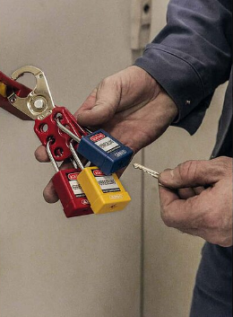Mit der Hauptschalter-Verriegelung von ABUS können Sie sicher und zuverlässig Hauptschalter im Wartungsfall sichern. Die hochwertige Verriegelung eignet sich besonders gut, wenn mehr als nur ein Einhängepunkt erforderlich ist. Zusätzlich kann die Hauptschalter-Verriegelung mit bis zu sechs Vorhangschlössern vor unbefugtem Zugriff geschützt werden. Bei beispielsweise Arbeiten an einer Maschine bleibt die Anlage so lange verriegelt, bis auch das letzte Vorhangschloss entfernt ist